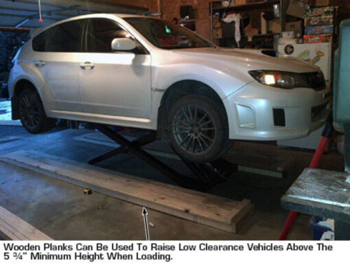 Due to the horizontal cylinder configuration of the Atlas® 6MR it is important to allow some space (2-6 inches) between the lifting surface of the lift and the vehicle’s lifting points.
