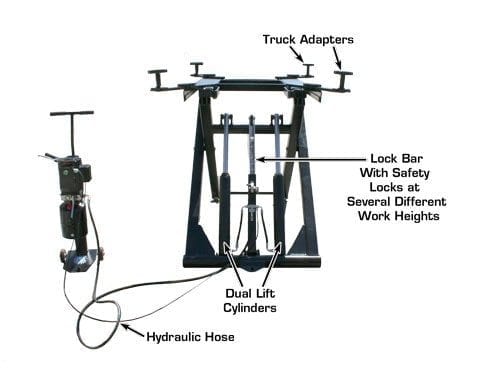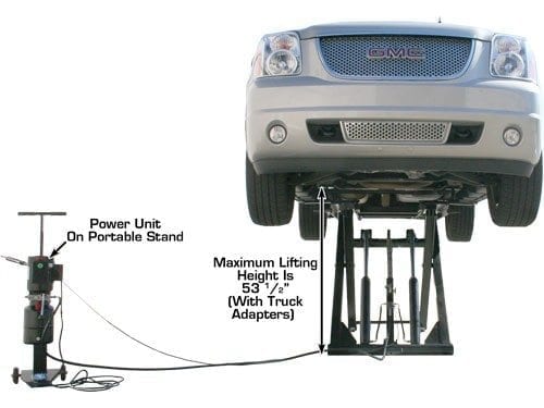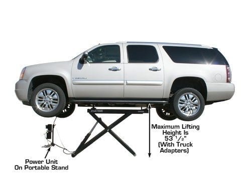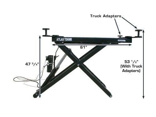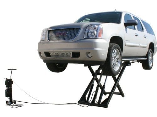 The Atlas® 6MR is a free standing 6,000 lb. capacity portable scissor lift. The 6MR is the perfect lift for body shops and wheel service specialists that need extra lifting height. This portable lift easily raises a 6,000 LB. car or truck to a comfortable working height. The unique platform design of the 6MR allows access to some areas on the underside of the car not easily accessible with other portable mid-rise lifts.