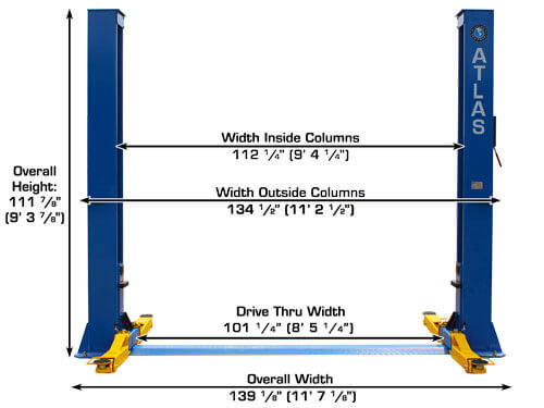 The Atlas® BP10000X commercial grade 2 post baseplate lift is built for those customers who want to lift heavy vehicles in a low ceiling garage. The Atlas® BP10000X incorporates the popular single point lock release columns have a middle welded support gusset that adds extra strength to the oversized columns. If you need to lift a one ton dually or a Smart Car and only have an 11 foot ceiling, this is the lift for your shop.