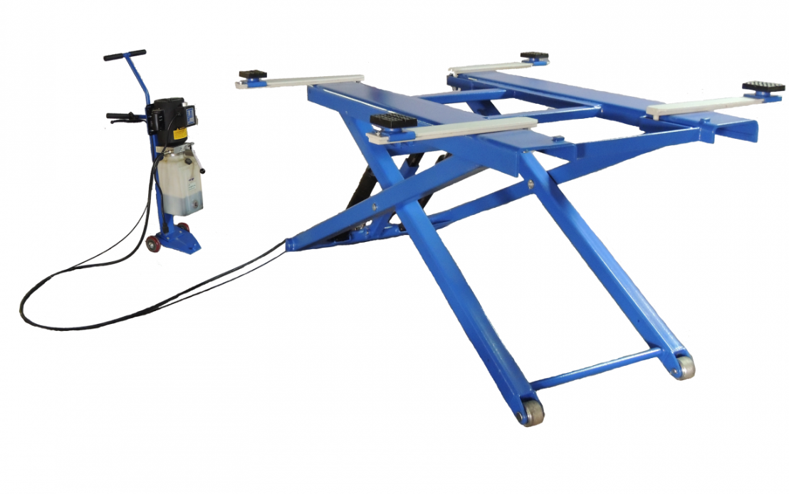 The MR6K-48X is a portable 6,000 lb. hydraulic mid-rise scissor frame contact lift, equipped with twin hydraulic cylinders & extended radius arms and contact pads for maximum strength and stability. The lift raises straight up without forward or aft movement and comes standard with portable dolly / power cart for wheel service, brake work, inspections & detailing all with the ease of mobility.